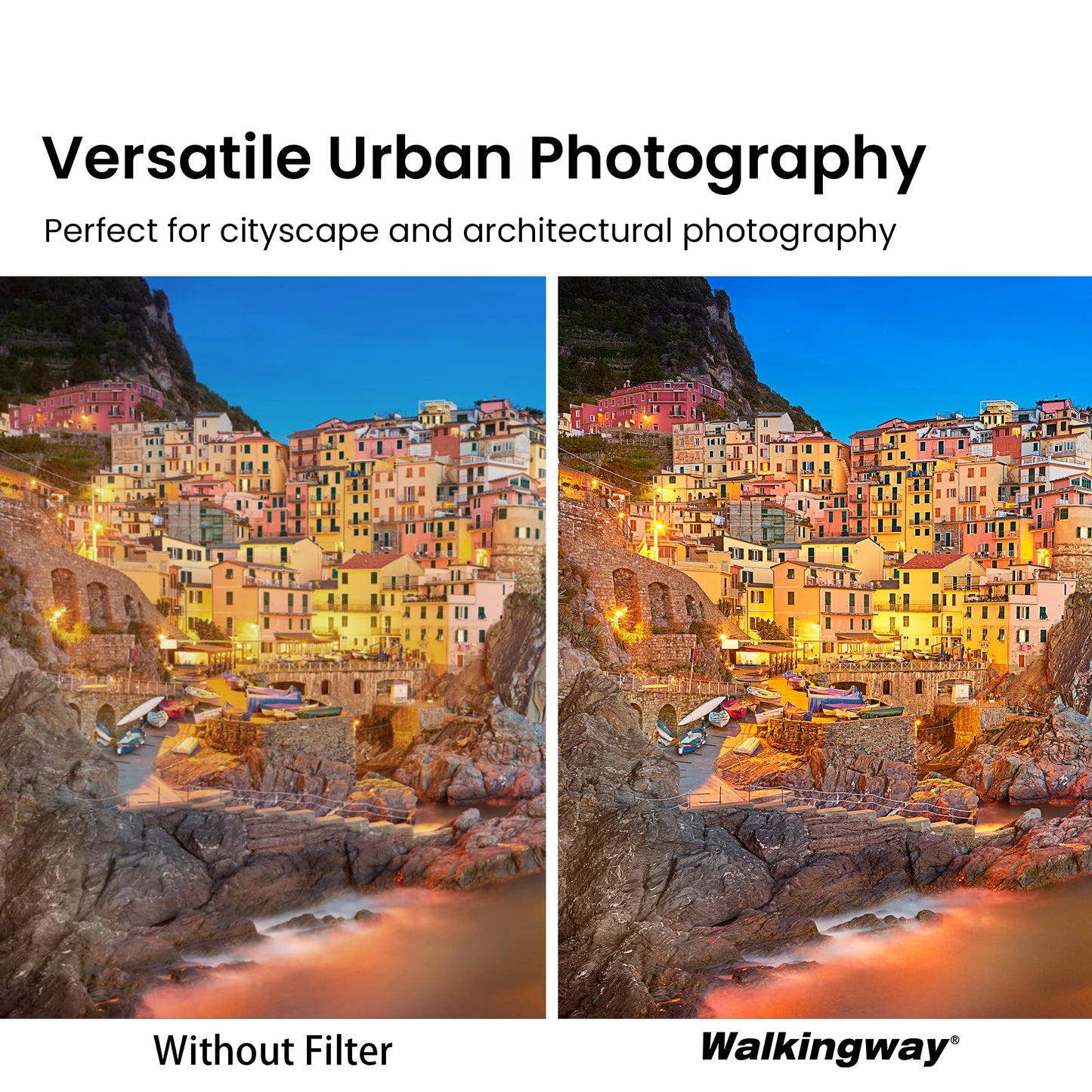 【Premium Night Sky Clarity】The Walking Way Natural Night Filter significantly reduces light pollution from urban sources like streetlamps, neon signs, and billboards, allowing you to capture the night sky with enhanced contrast and vivid colors. Ideal for night photography and astrophotography.